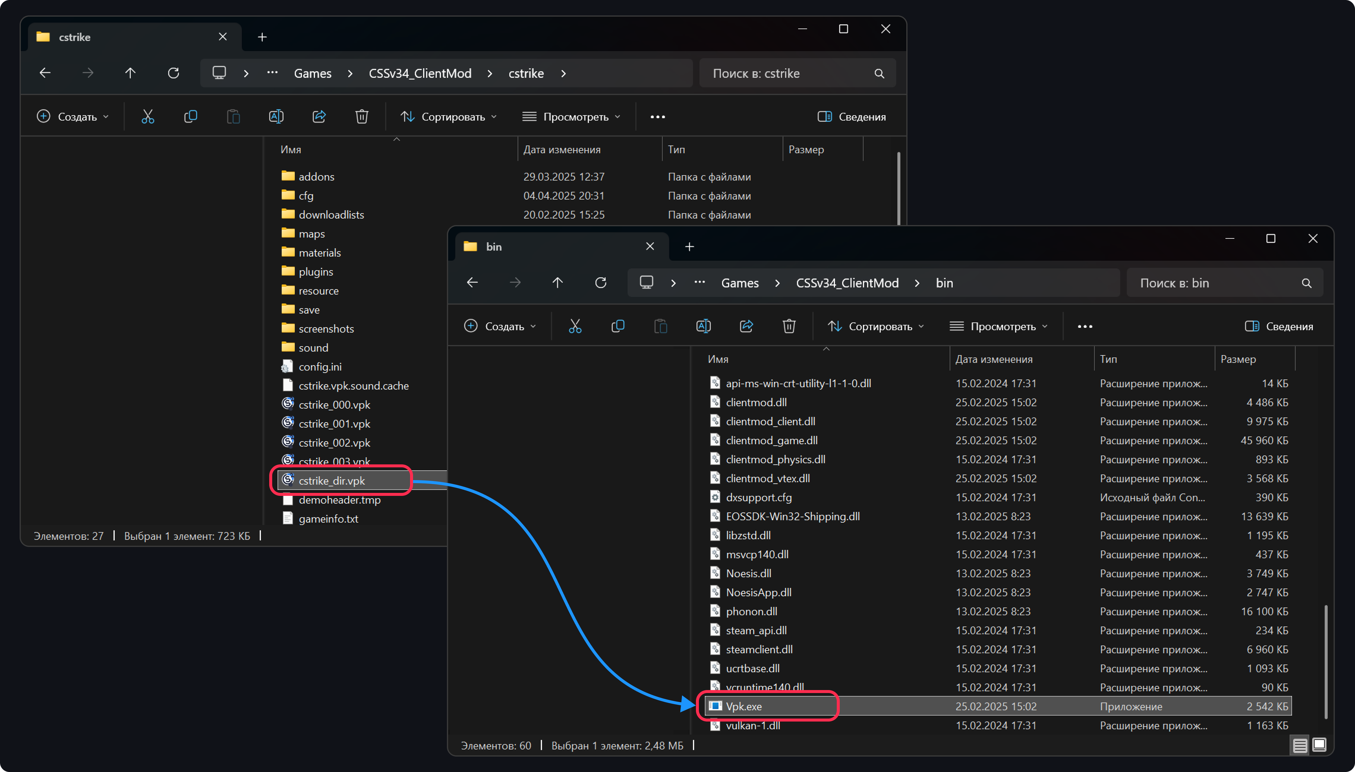 Вопрос: как и чем открывать эти файлы? Я пытался с помощью vpk.exe любезно помещенным в папку bin авторами, но смог открыть лишь cstrike_clientmod_dir, все остальные впк файлы не в какую не хотят открываться, помогите с решением данной проблемы кто шарит.