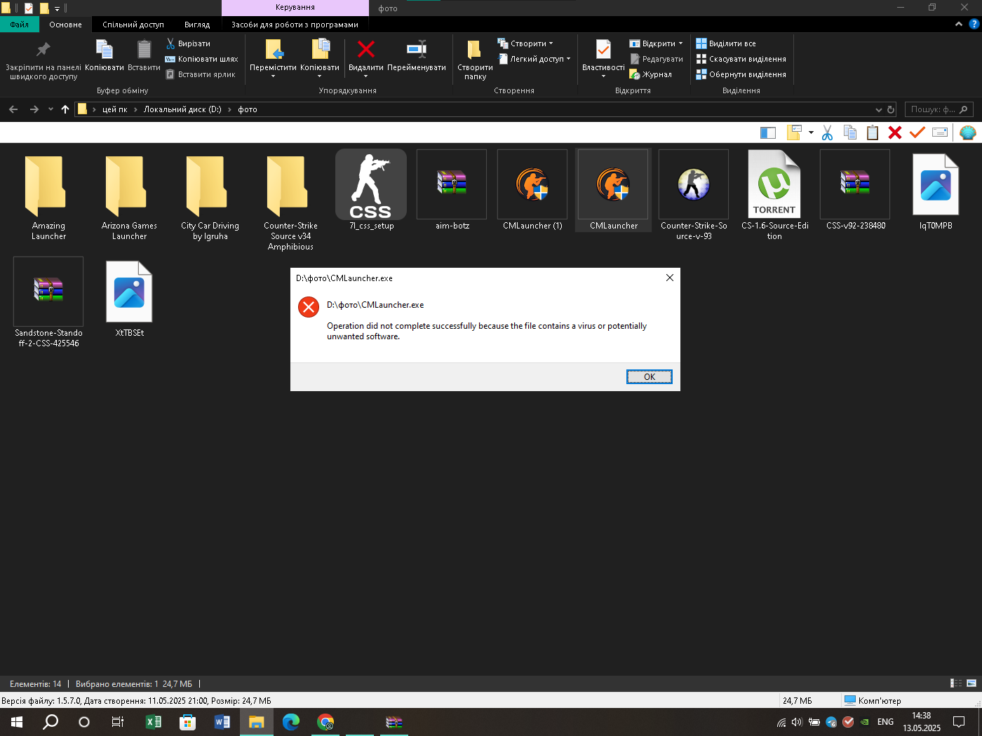 Operation did not complete successfully because the file contains a virus or potentially unwanted software.адміни помогіть умаляю как ето решить