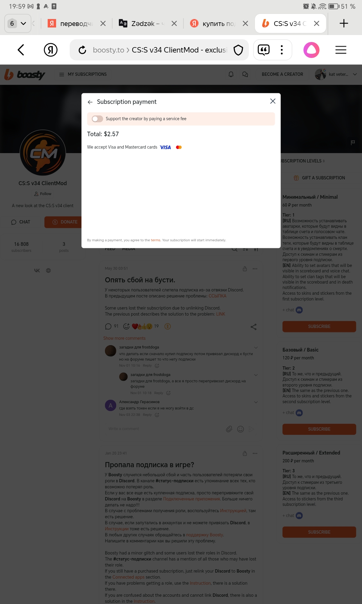 Хотел задонатить через бусти но без *** не грузитсч меню опалты, а с *** оно грузится но при вводе данных выдает ошибку типо я сижу с *** и просит отключить
